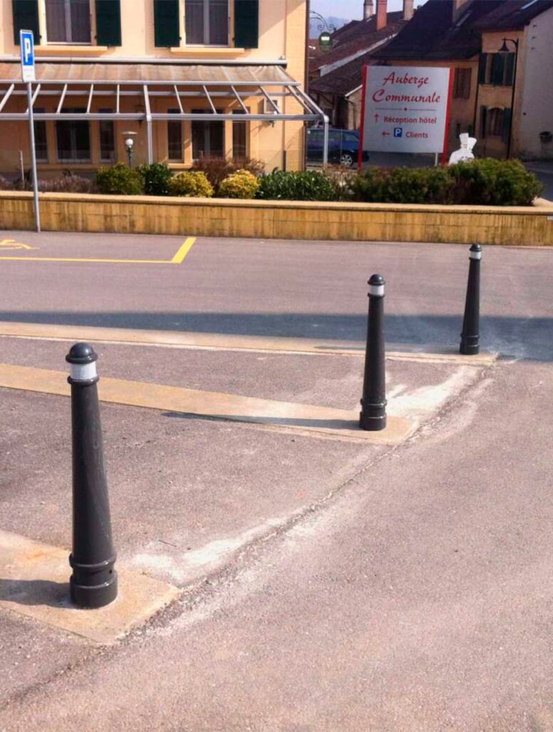 Bolardos flexibles de caucho reciclado para zonas peatonales, aparcamientos, accesos, etc.
