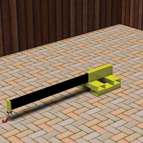 - Como Brazo de Carga (Posición Longitudinal): Acoplado a las horquillas en la misma dirección del avance, actúa como un brazo de carga tradicional, ideal para izar y mover cargas suspendidas.