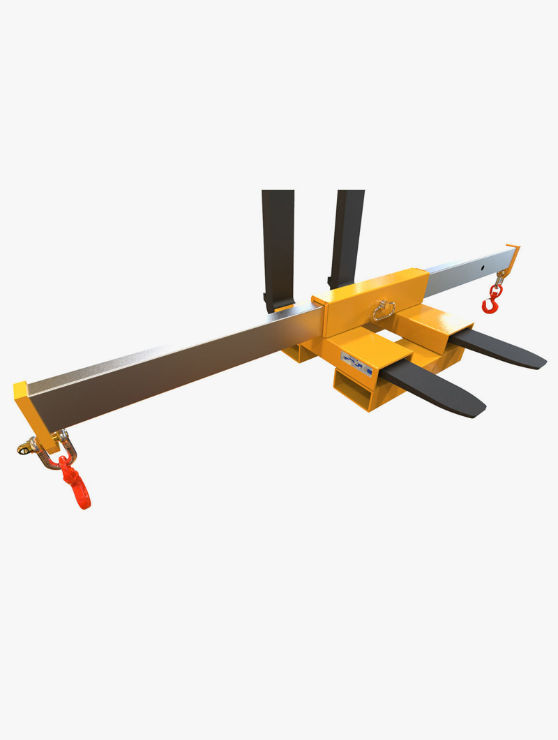 - Como Estabilizador (Posición Transversal): Acoplado de forma transversal a las horquillas, se convierte en un soporte crucial para estabilizar cargas suspendidas de gran longitud, tales como vigas, tubos o perfiles largos, garantizando un movimiento seguro y controlado.