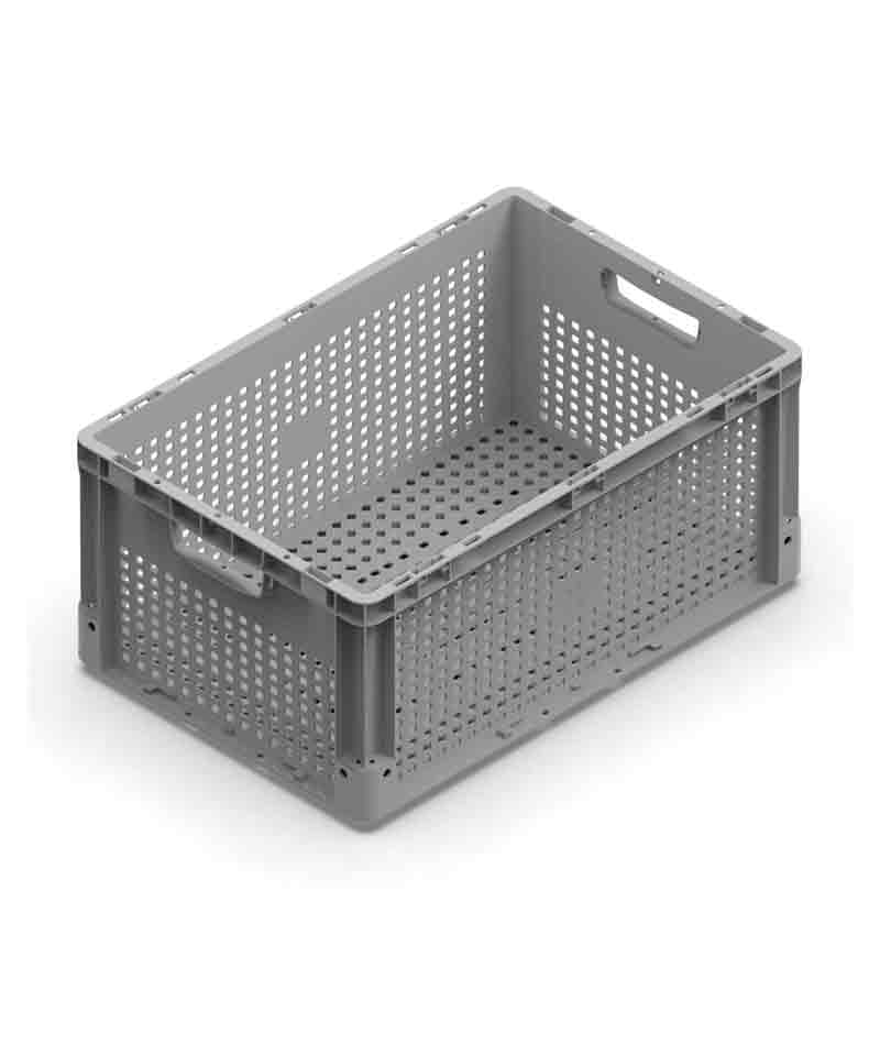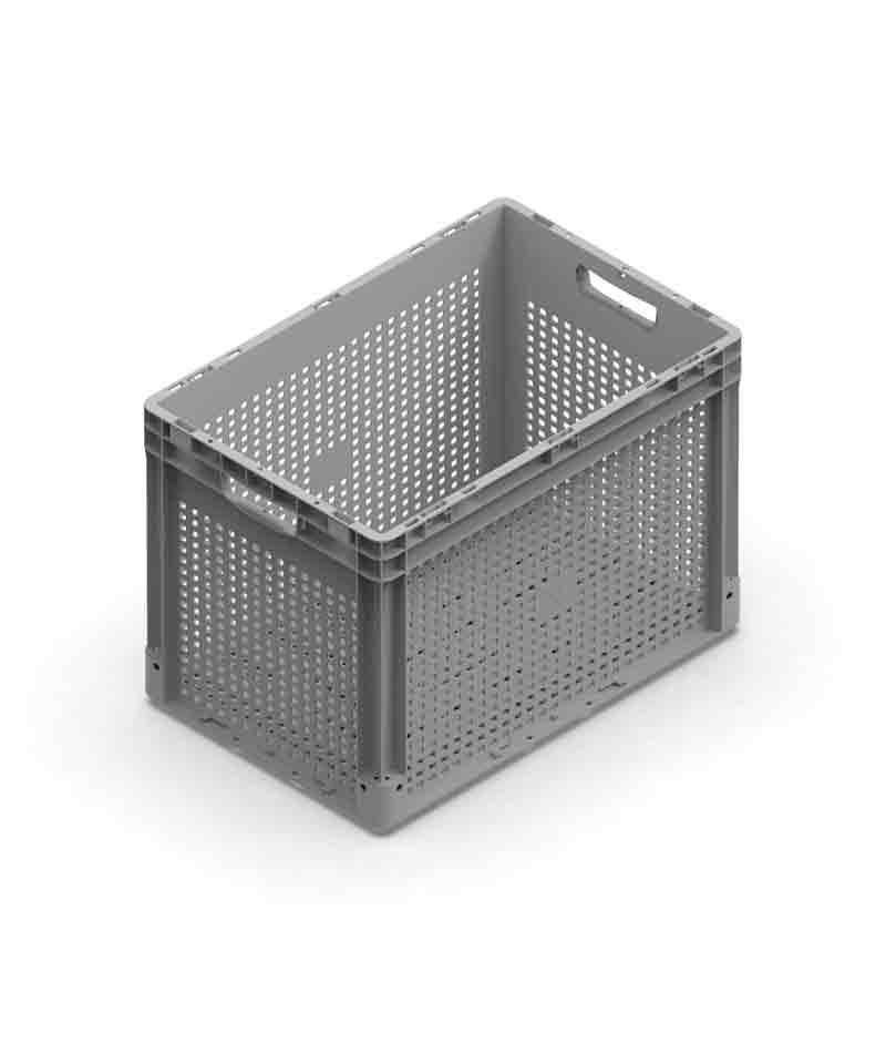 Las cajas de plástico Nexit rejadas se entregan listas para su uso.