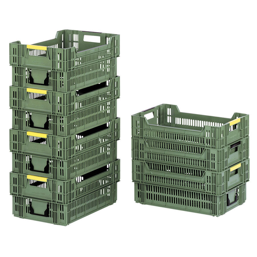 Consulte la gran variedad de modelos de cajas de plástico para frutas y vegetales. Disponemos de modelos apilables, encajables, plegables ideales para almacenar y transportar los alimentos. Todas las cajas están diseñadas para la utilización en el segmento de los alimentos frescos. Fabricadas a partir de polietileno de alta densidad PE-HD apto para el uso en la industria alimentaria. Alta capacidad de apilado para asegurar el transporte y reducir costes. Diseño robusto y resistente gracias al conjunto de nervios distribuidos estratégicamente por todos los laterales de las cajas.