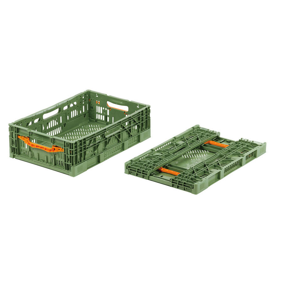 Las Cajas de plástico plegables para frutas y vegetales han sido diseñadas no sólo para ser utilizadas en los circuitos de productos frescos como son las frutas y las verduras, sino también en otro tipo de aplicaciones. Su sistema de paredes plegables facilitan la maniobra de manera instantánea. El ahorro considerable en espacio de hasta el 80% reduce considerablemente los costes en los circuitos logísticos. Todas las cajas están diseñadas para la utilización en el segmento de los alimentos frescos. Fabricadas a partir de polietileno de alta densidad PE-HD apto para el uso en la industria alimentaria. Diseño robusto y resistente gracias al conjunto de nervios distribuidos estratégicamente por todos los laterales de las cajas.