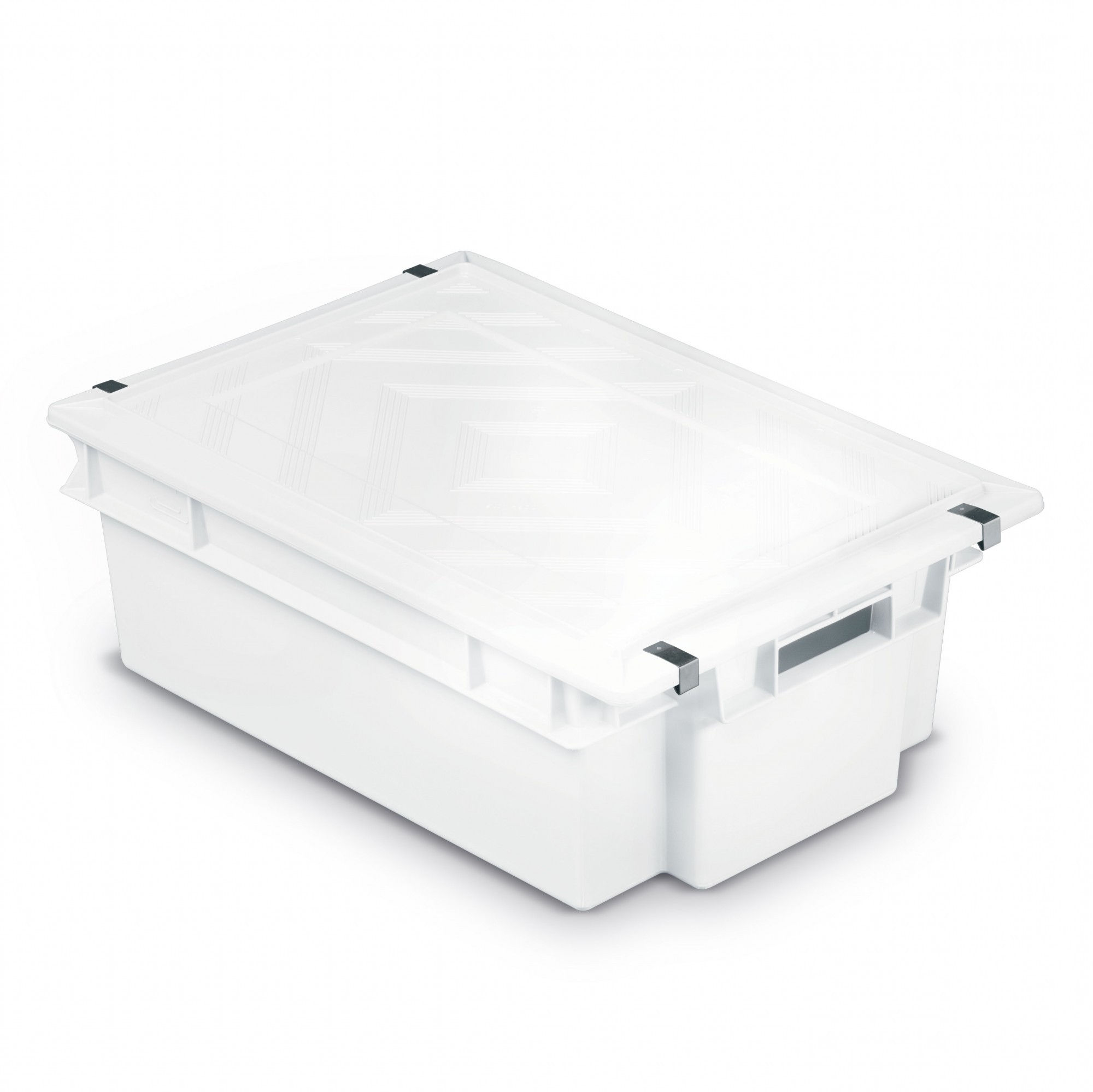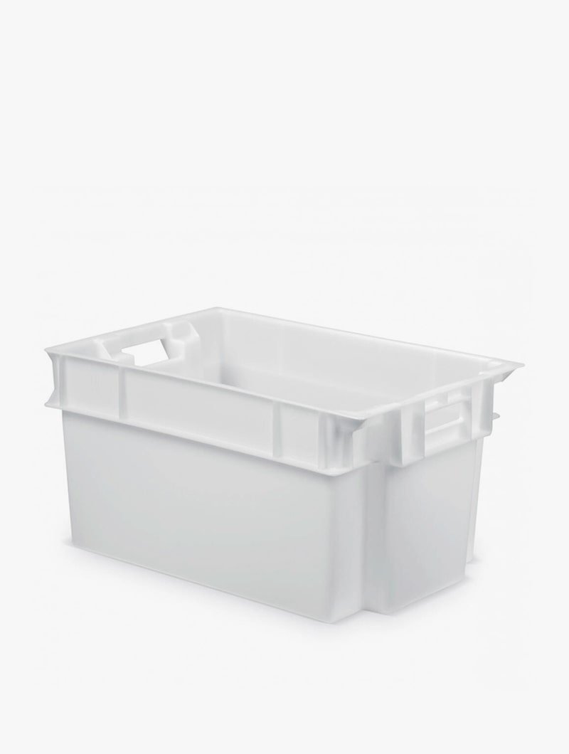 Cajas de plástico, higiénicas, apilables y encajables fabricadas en polipropileno para uso alimentario.