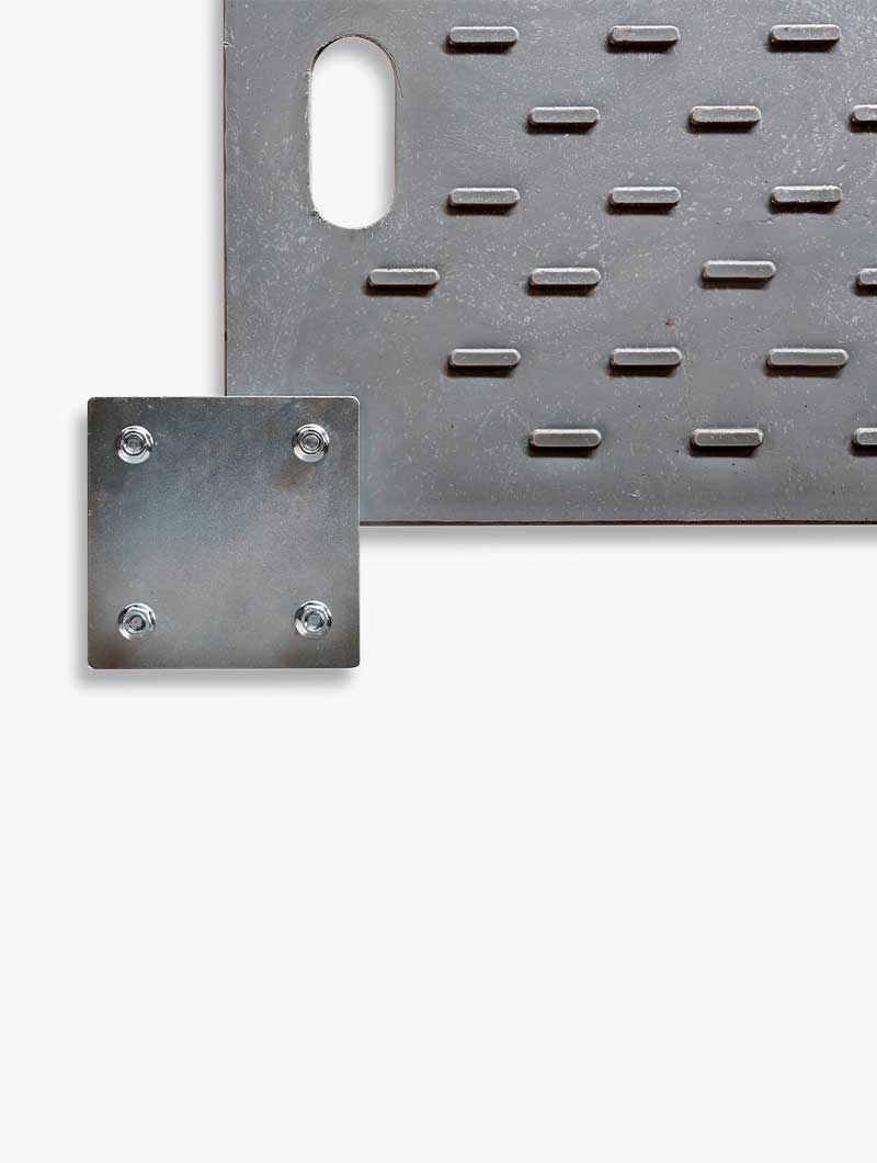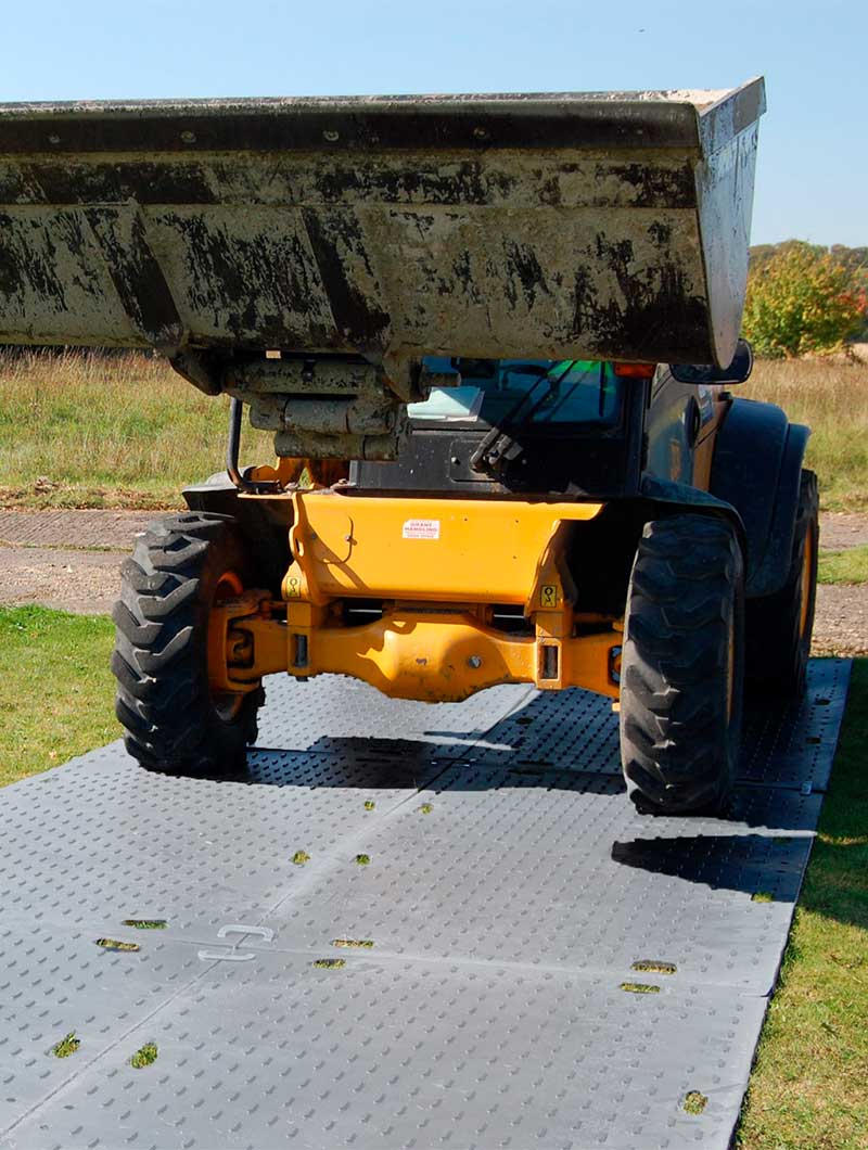 Gracias a su diseño técnico, la carretera temporal para vehículos cuenta con una cara superior de gran agarre, ideal para el paso de camiones, carretillas elevadoras, excavadoras o grúas, y una cara inferior con un relieve más suave que permite su uso también como alfombra peatonal.