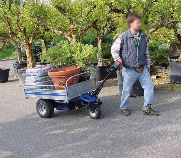- Con ruedas neumáticas para uso interior y exterior.