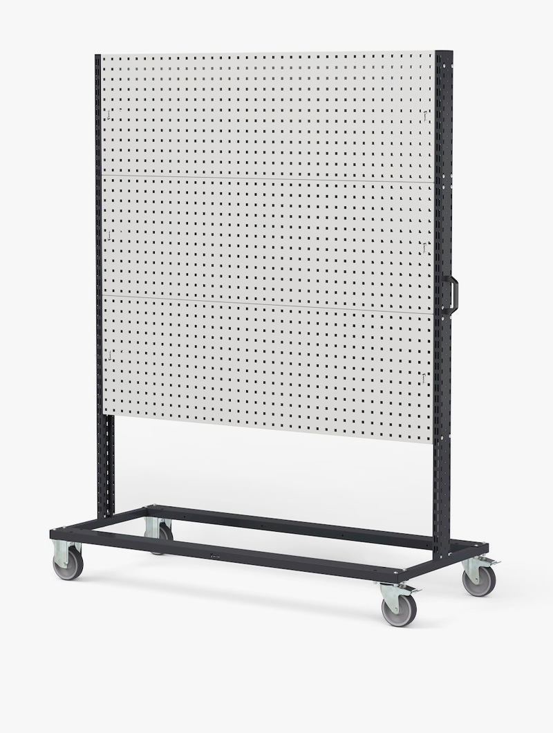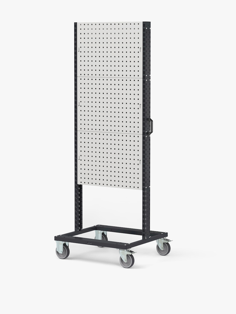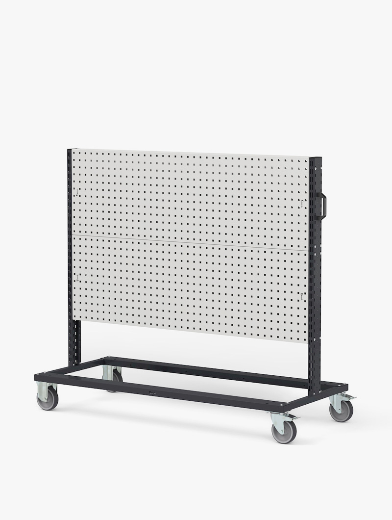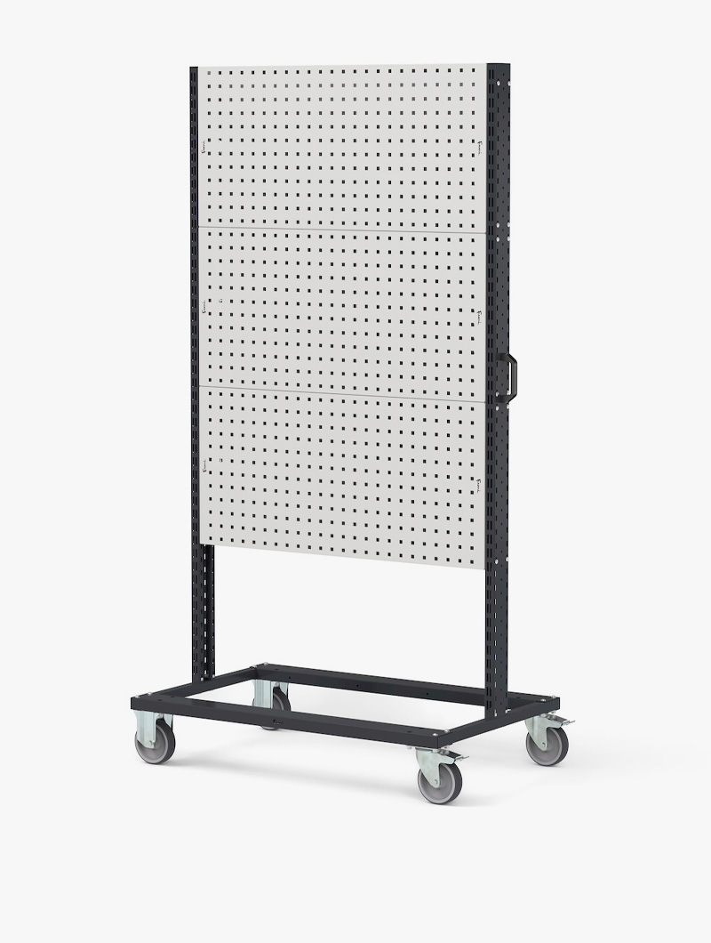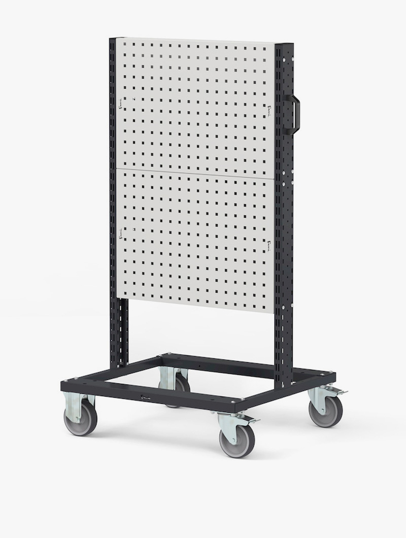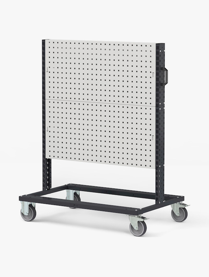 Carros con paneles perforados BINCART con estructura de perfil de acero galvanizado de alta resistencia.
