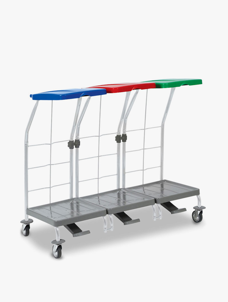 Los carros de recogida para lavandería se utilizan principalmente para el transporte de ropa sucia en hospitales, residencias, restaurantes, hoteles… Tienen una estructura revestida de Rilsan y una base resistente de plástico útil en caso de bolsas pesadas. Están disponibles con y sin pedal o con y sin tapa. Tanto las cubiertas como las bolsas están disponibles en cuatro colores diferentes para separar la ropa.