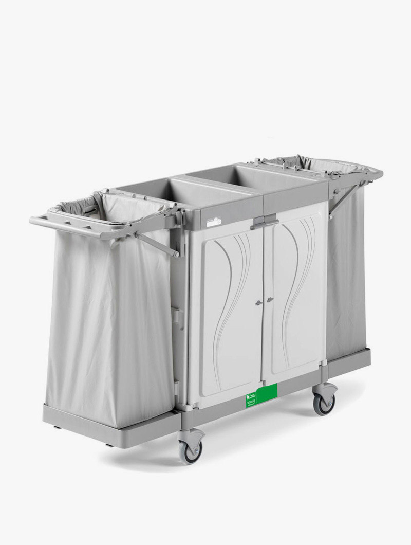 Estos carros pueden equiparse con una amplia y completa gama de accesorios, satisfaciendo cualquier necesidad de limpieza: cambio de toallas y ropa de cama, limpieza de habitaciones y baños y recogida de residuos.