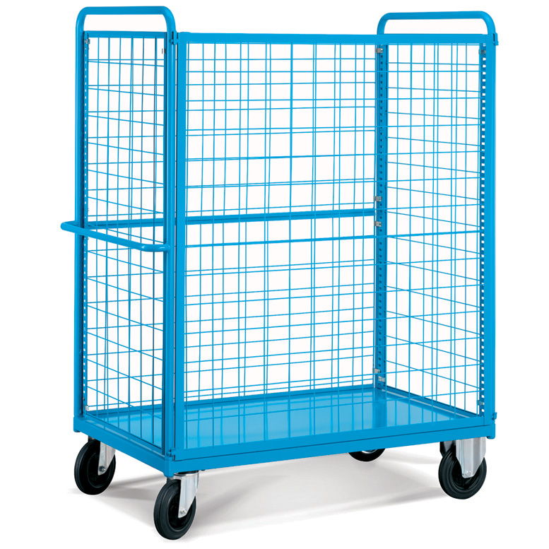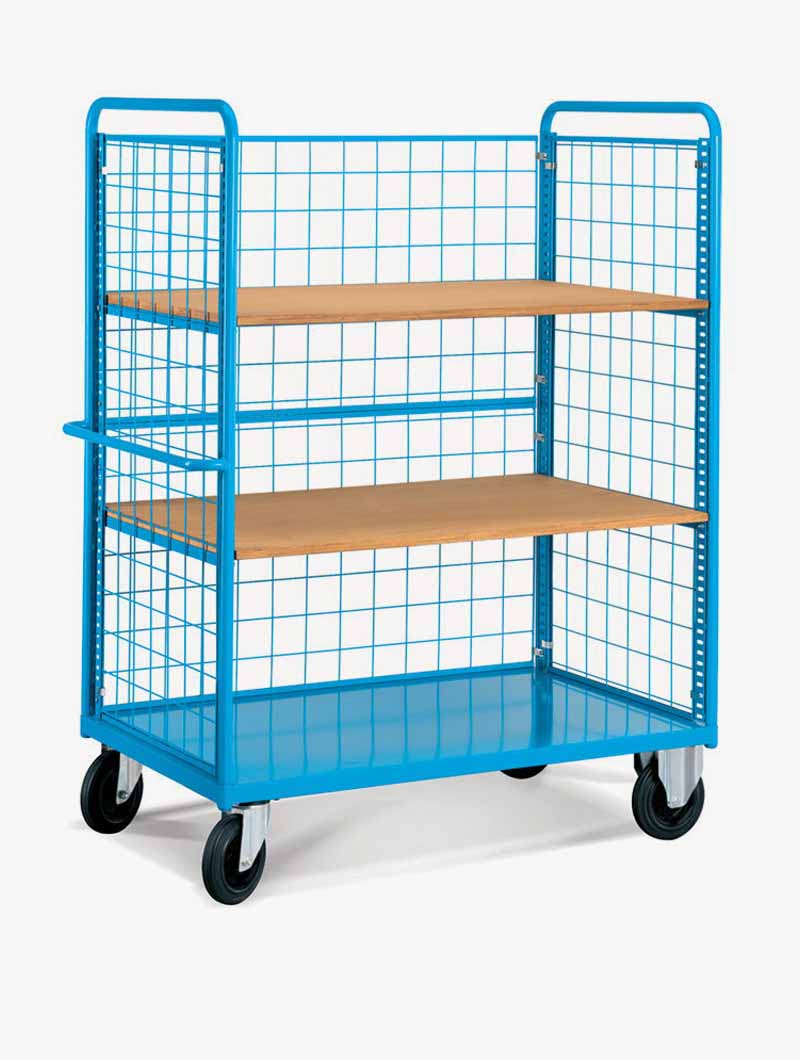 Categorías CAJAS Y CONTENEDORES, Carros con base metálica o madera, Carros con base de acero, Carros de transporte, Carros para transporte de cajas, Carros, Carros con paredes de malla, Carros con estantes, Mobiliario para cajas, Carros metálicos, Carros ligeros para transporte de cajas, MOBILIARIO TÉCNICO