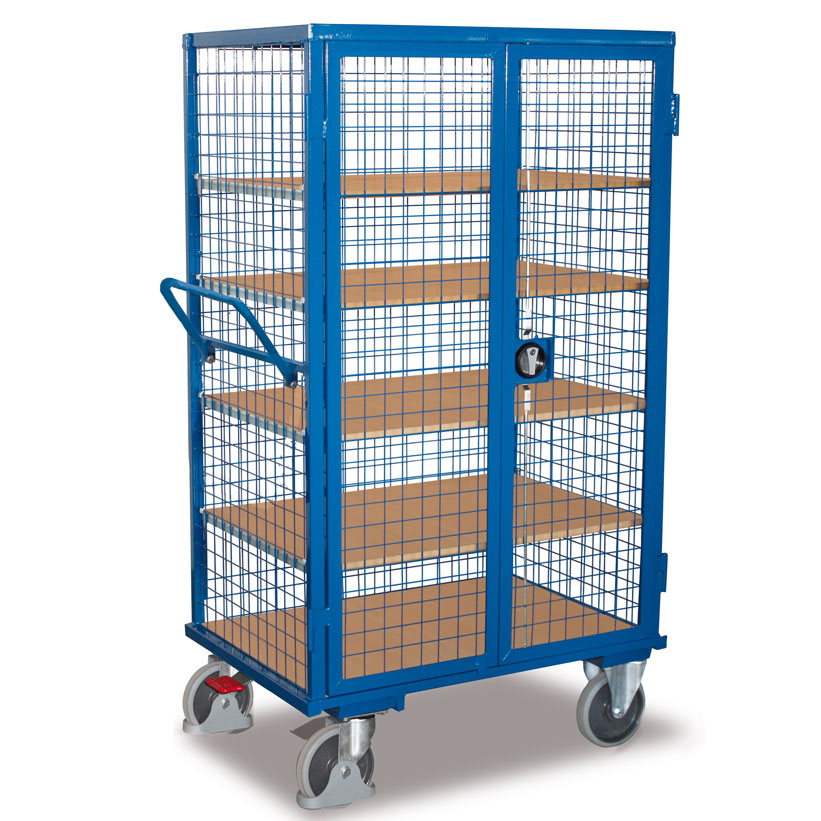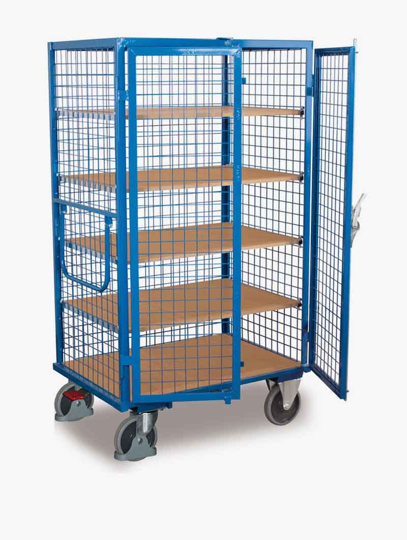 Los carros de transporte con paredes rejadas y puertas con freno están diseñados para ofrecer una solución práctica y segura en el almacenaje y movimiento de mercancías. Su sistema de cerramiento mediante puertas batientes permite mantener los productos a salvo durante el transporte o almacenamiento.