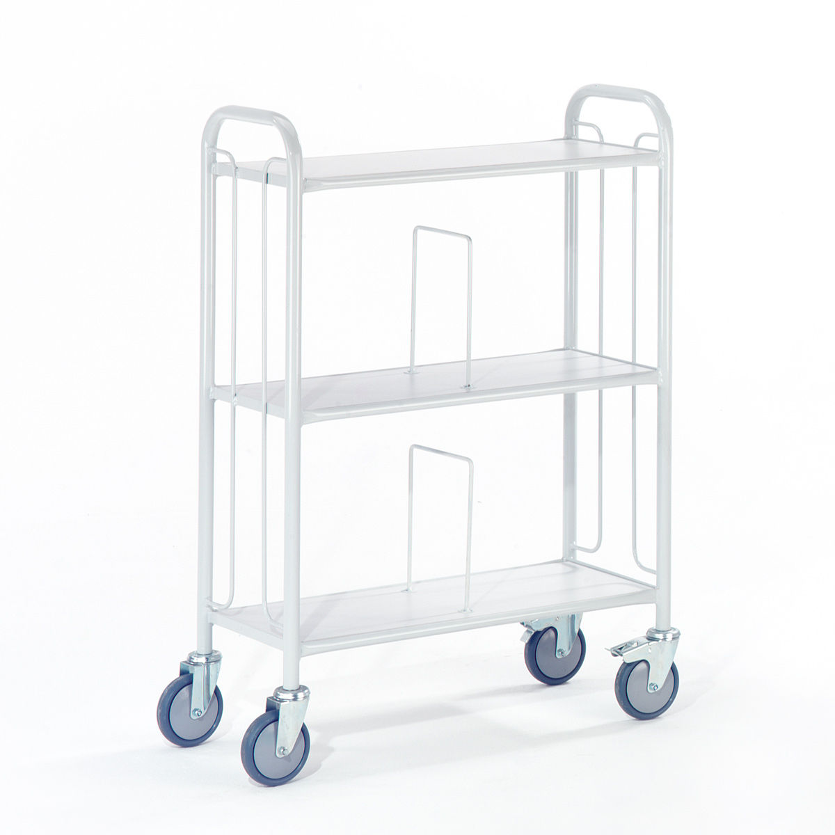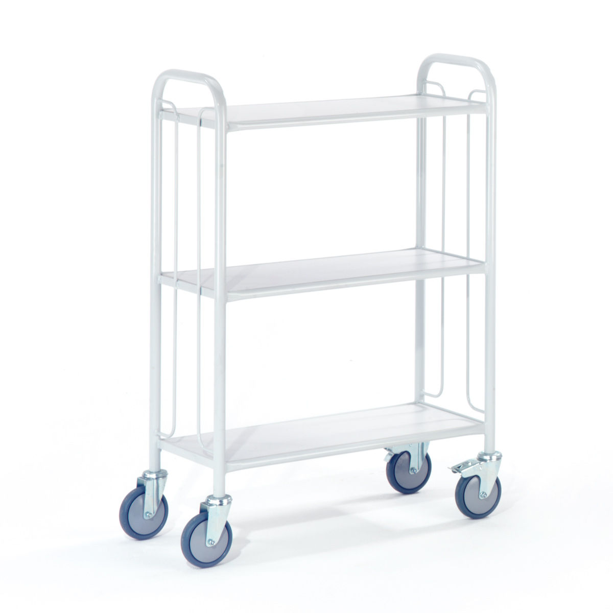 Dispone de 4 ruedas giratorias, 2 de ellas con freno de pie que bloquea a su vez el giro según norma EN1757-3.