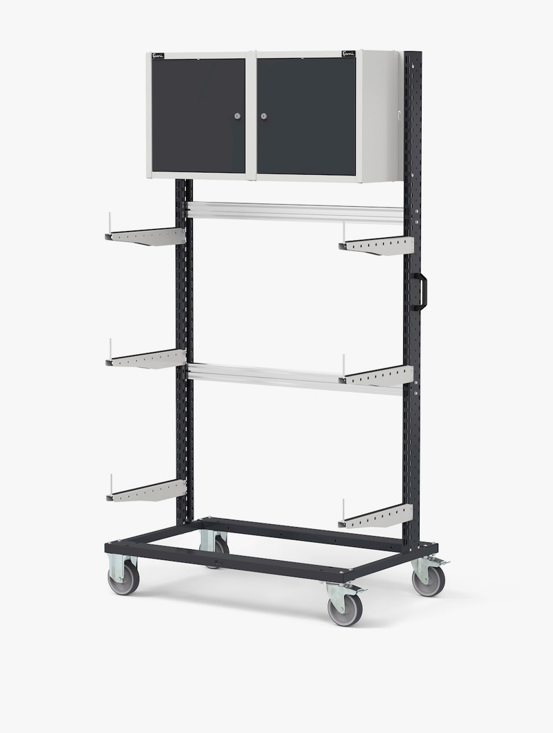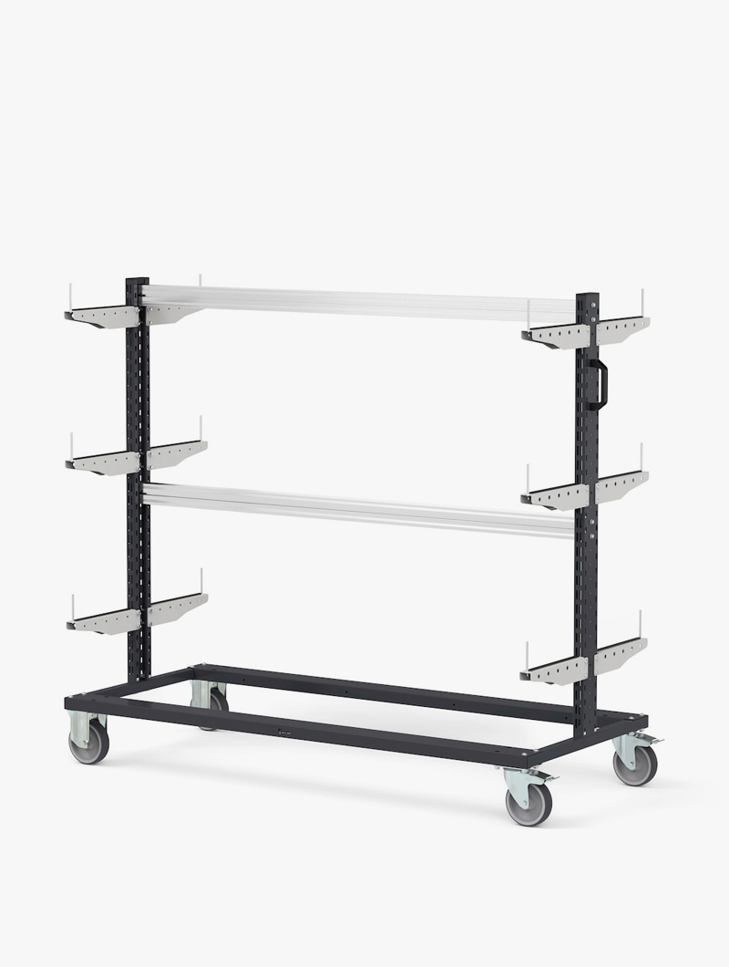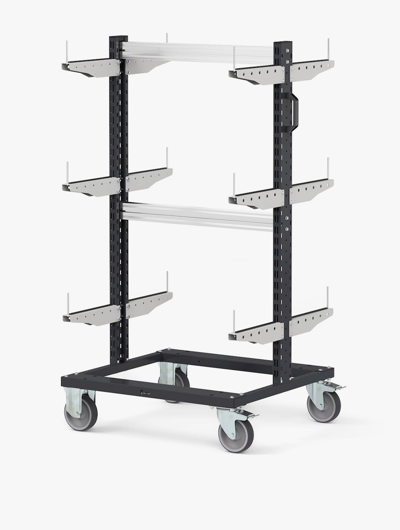 Carros para perfiles y listones BINCART con estructura de perfil de acero galvanizado de alta resistencia.