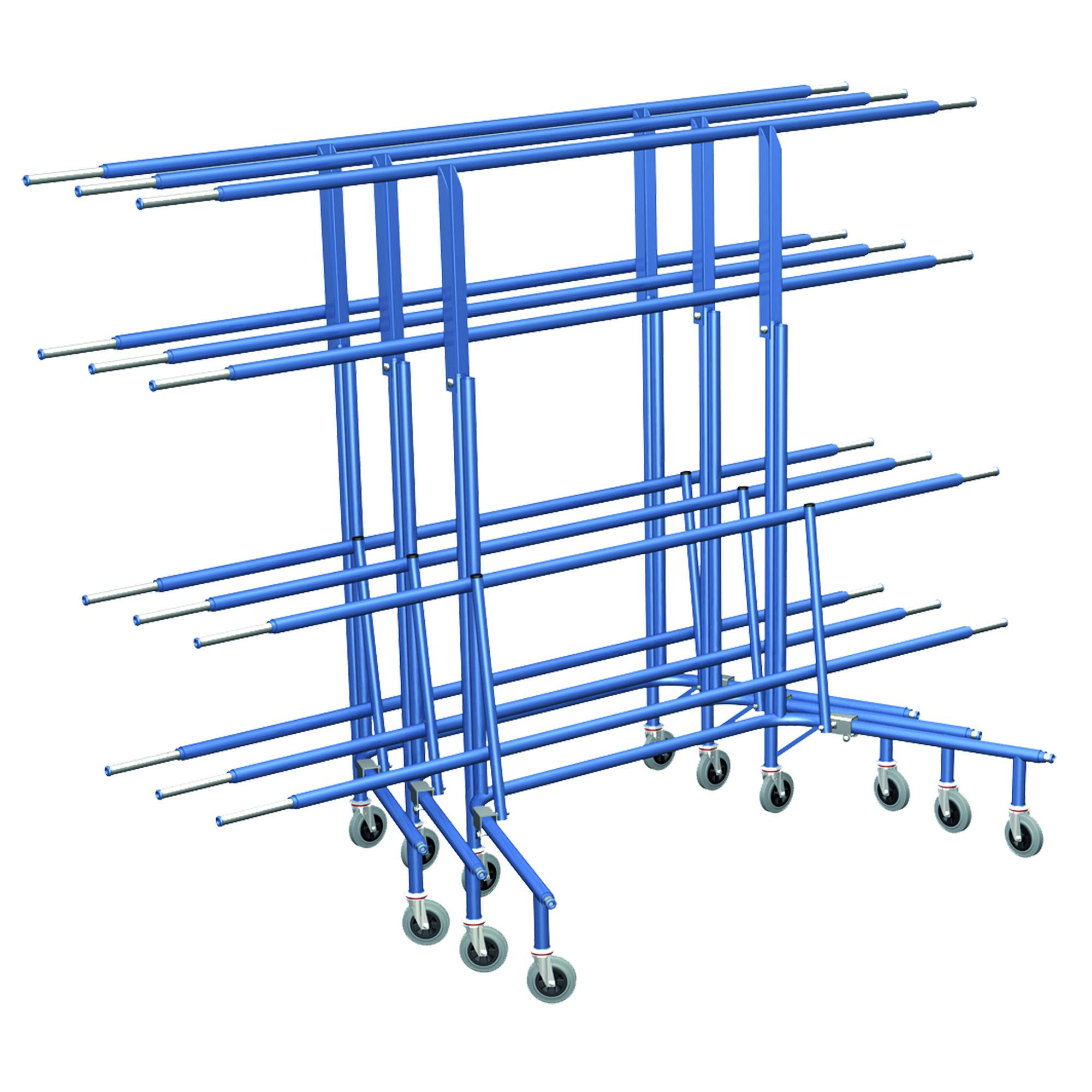 Carros para transporte y almacenamiento de productos tapizados, especialmente diseñados para mobiliario o material tapizado. Estructura tubular de acero para la máxima protección del producto. Sistema plegable y encajable para el máximo aprovechamiento del espacio cuando no están en uso. Barras telescópicas para adaptarse a la medida necesaria. Multitud de accesorios disponibles para todo tipo de industrias y aplicaciones. Gama de colores RAL bajo pedido