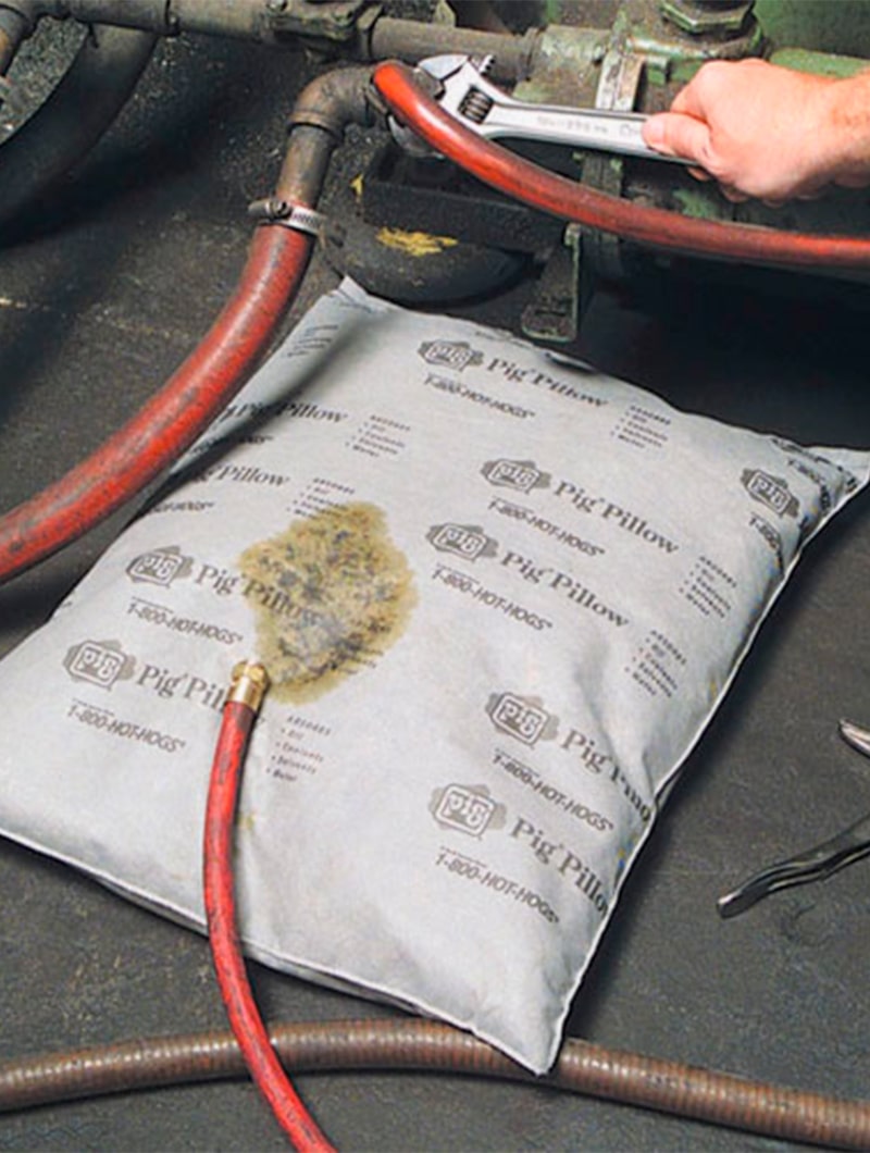 • La capa y el relleno de polipropileno duros y resistentes a las sustancias químicas absorben los aceites pero repelen los líquidos de base acuosa.