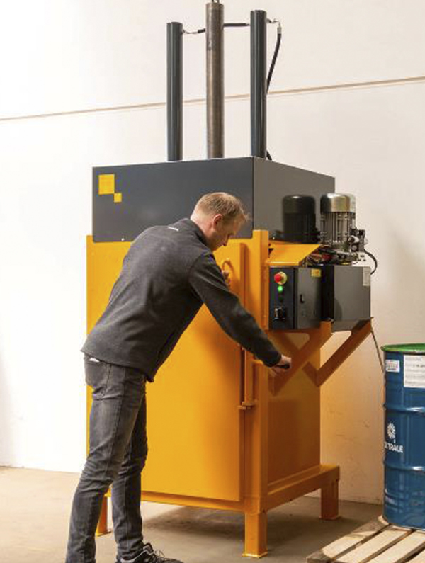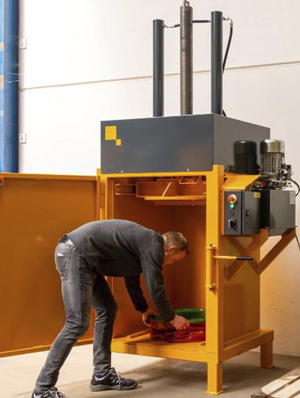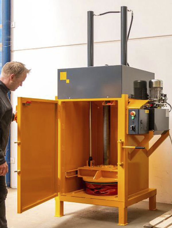 Adecuada para bidones de hasta 200 litros con una potencia de prensado de 16 tn.