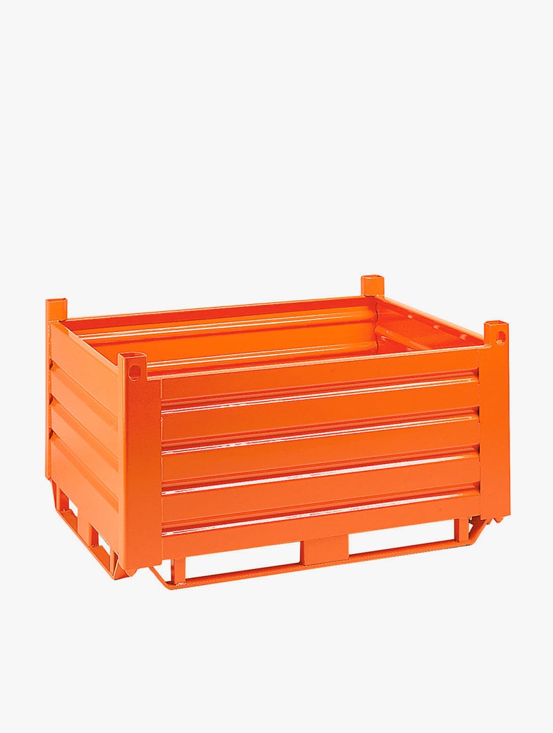 Contenedor con paredes de chapa para cargas pesadas con patines en los 4 lados