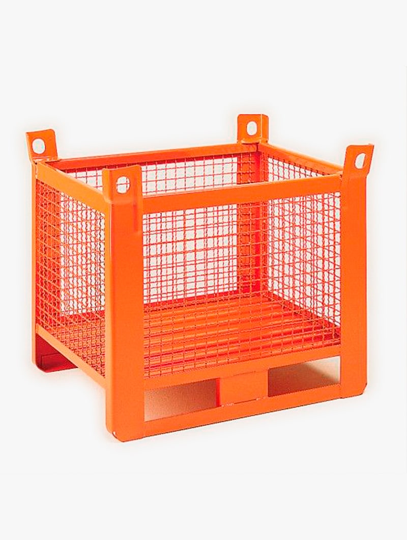 Contenedor de chapa nervada con fondo ondulado, con paredes de malla y patines.