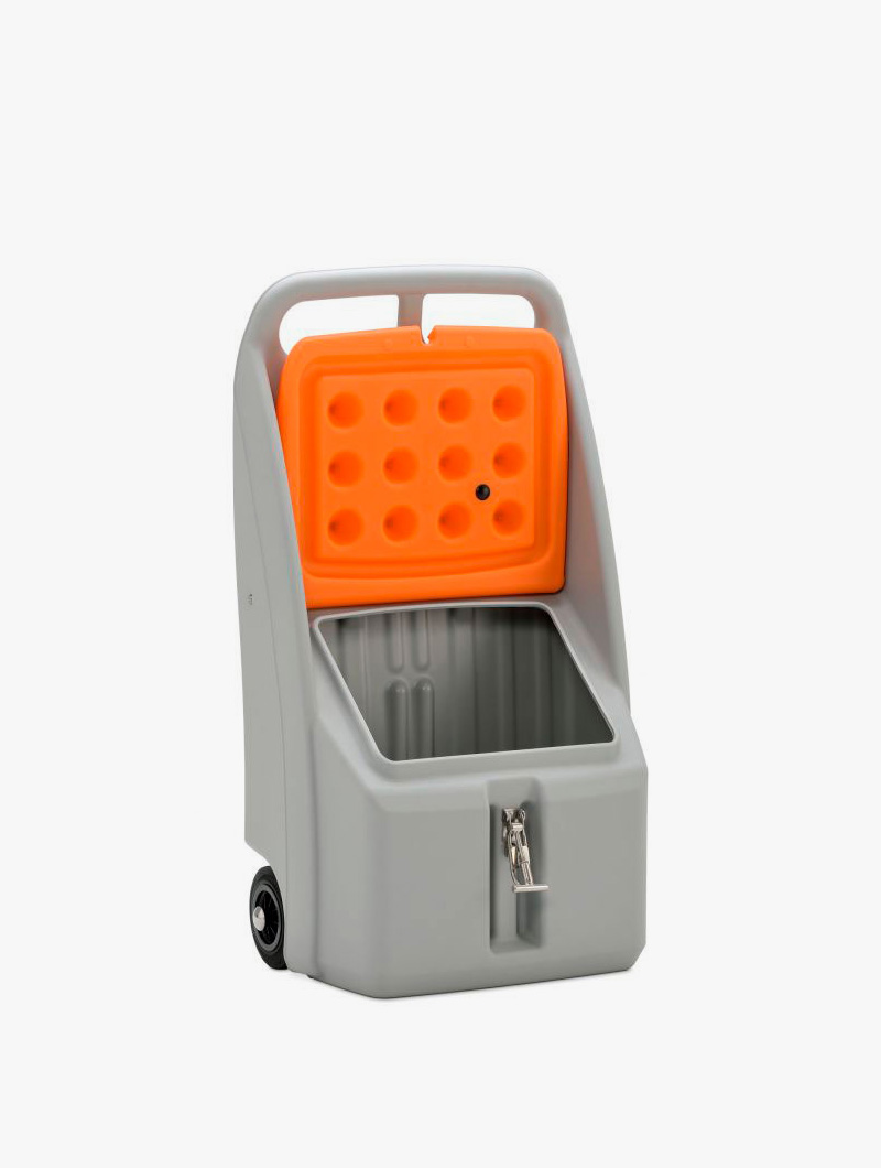 El Contenedor dispensador de sal para nieve es un compañero ideal para transportar un volumen de hasta 70 litros de sal para derretir la nieve. Con un sistema de equilibrio sofisticado que le permite una fácil manipulación, podrá desplazar la sal para derretir la nieve hasta la zona de uso y luego reponer su interior cómodamente.