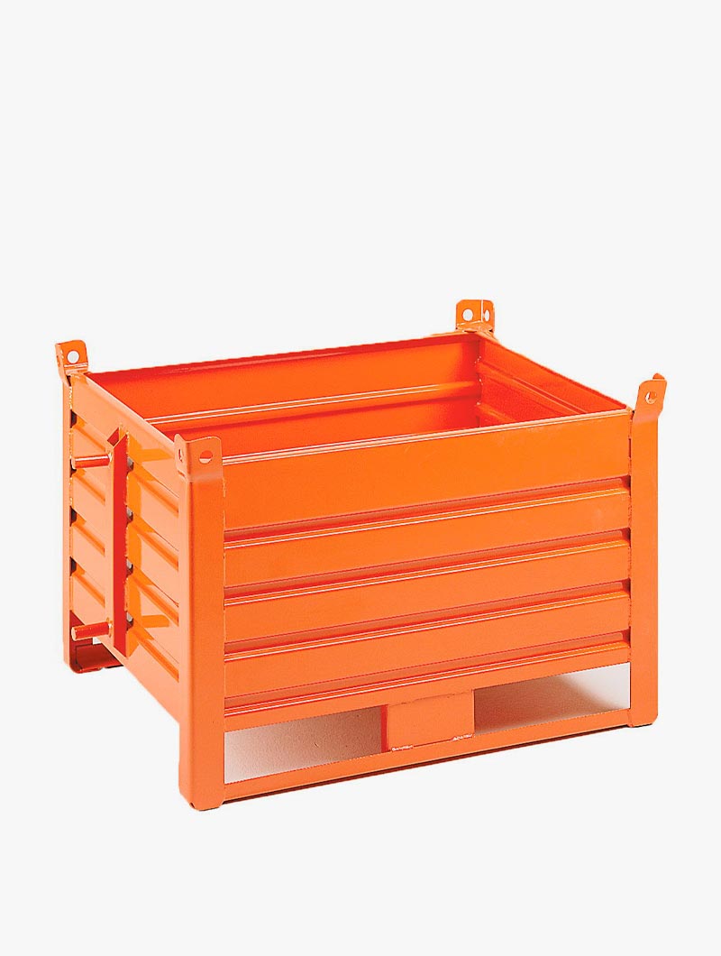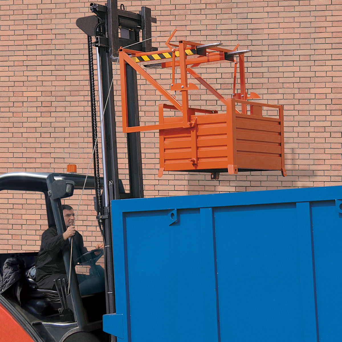 Contenedor metálico basculante con rotación a 180º con doble amortiguación para la absorción del vuelco.