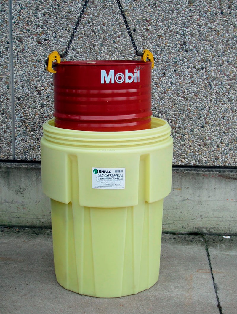 Contenedor portabarriles de 200lts fabricado en polietileno de alta densidad resistente a la corrosión y a los rayos UV.