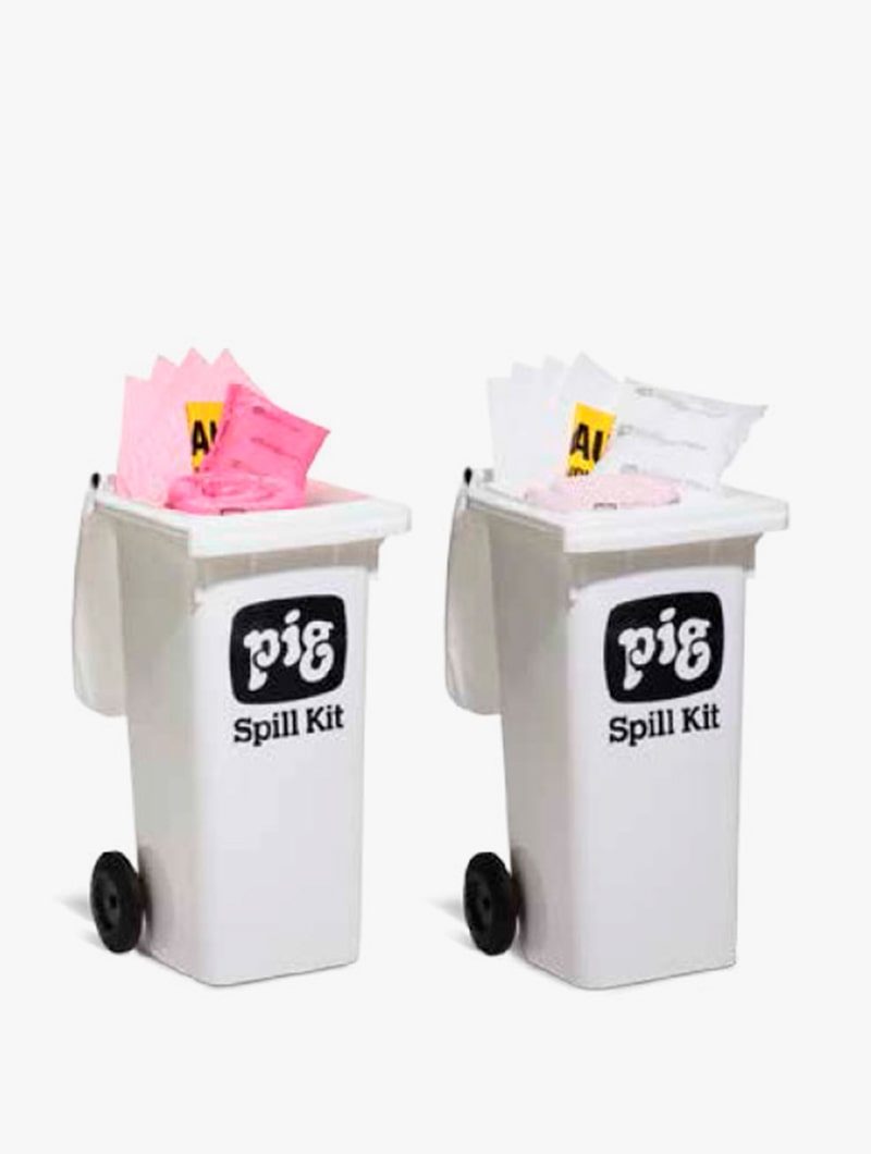• Contenedor duradero con ruedas, se presenta con Absorbentes PIG de alta calidad.