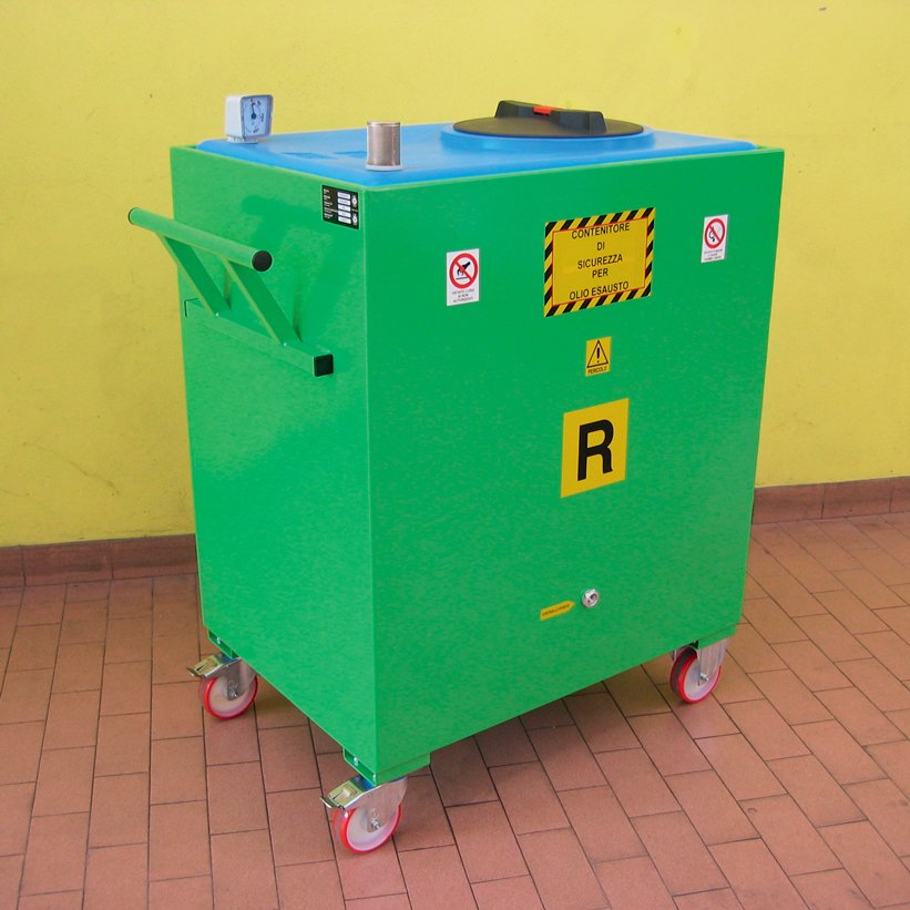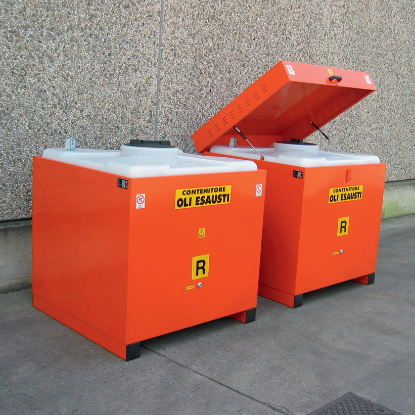 Contenedores de acero pintado con interior en polietileno para el almacenaje de aceites usados y fluidos provenientes de la industria alimentaria.