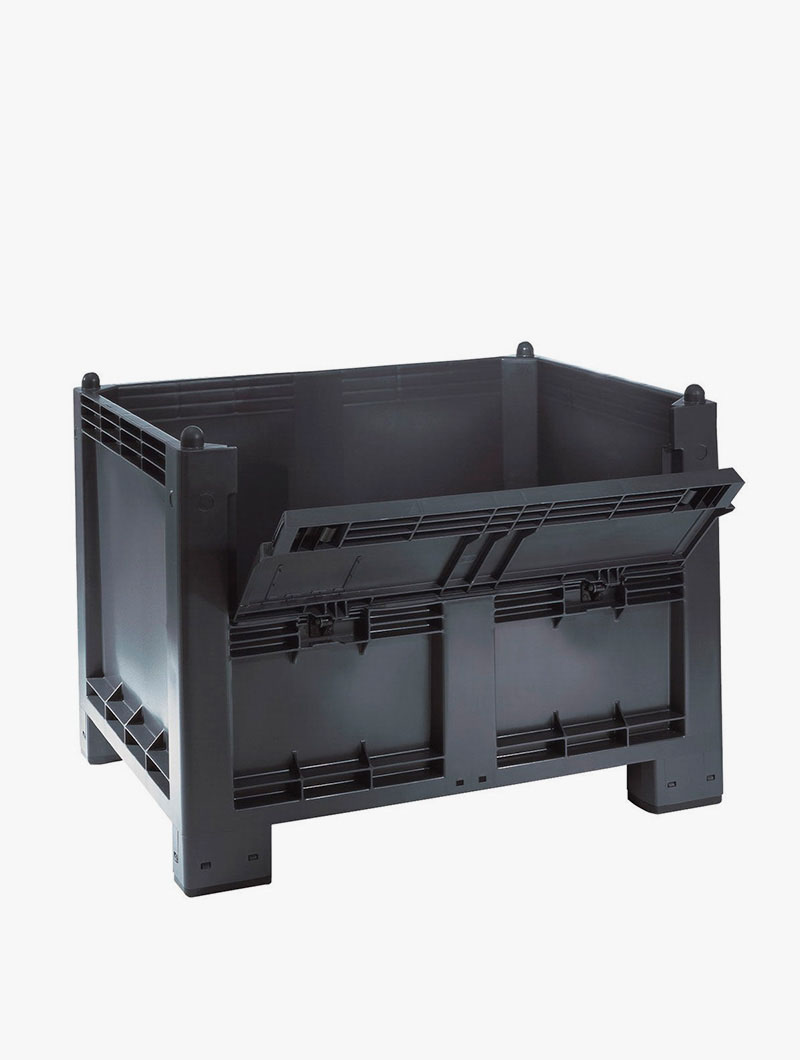 Opcion con fondos y laterales lisos o paredes rejadas, para la aireación y ventilación de los productos almacenados. En ambos casos, interiores con bordes ligeramente redondeados para facilitar su limpieza. No absorbe olores ni humedad.