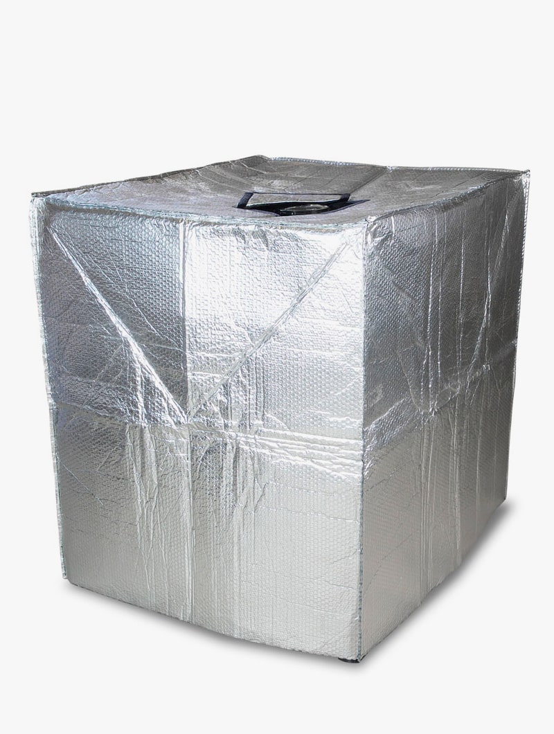 Las cubiertas de papel burbuja IBC están hechas de una capa externa de aluminio metálico, que desvía los rayos del sol, y una entrecapa de papel burbuja que ayuda a crear espacio entre la capa externa y el contenedor, resultando en transferencia de calor del exterior de mínima a ninguna.