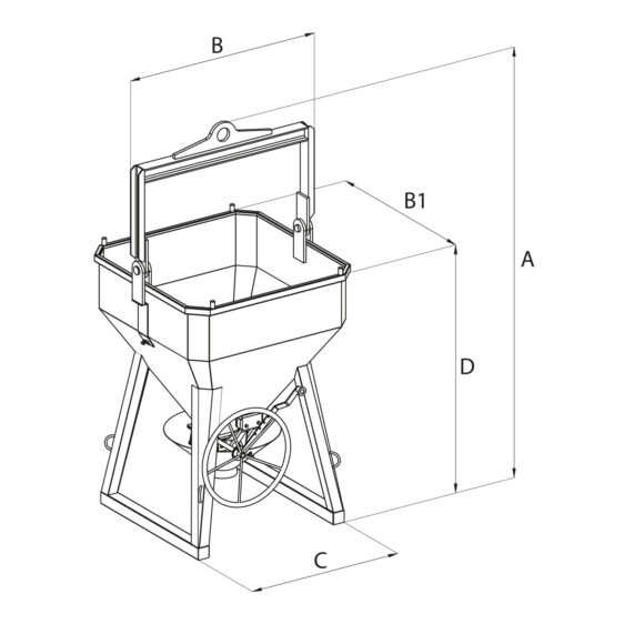 - Mecanismo de apertura con volante para ajustar el flujo de hormigón descargado.
