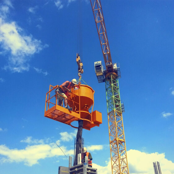 Cubo de hormigón con palanca y plataforma elevadora