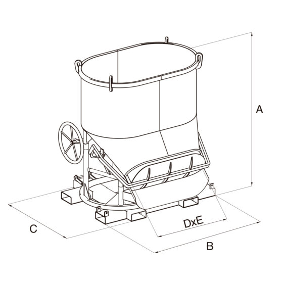 - Cubo para hormigón con descarga lateral con apertura a volante.