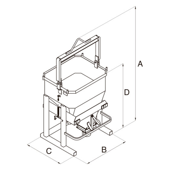 Cubo para hormigón con alojamiento para horquillas y tubo de goma