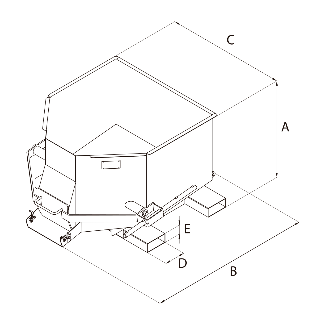 - Base particular que permite al cubo ser cogido con la horquilla por 3 lados.