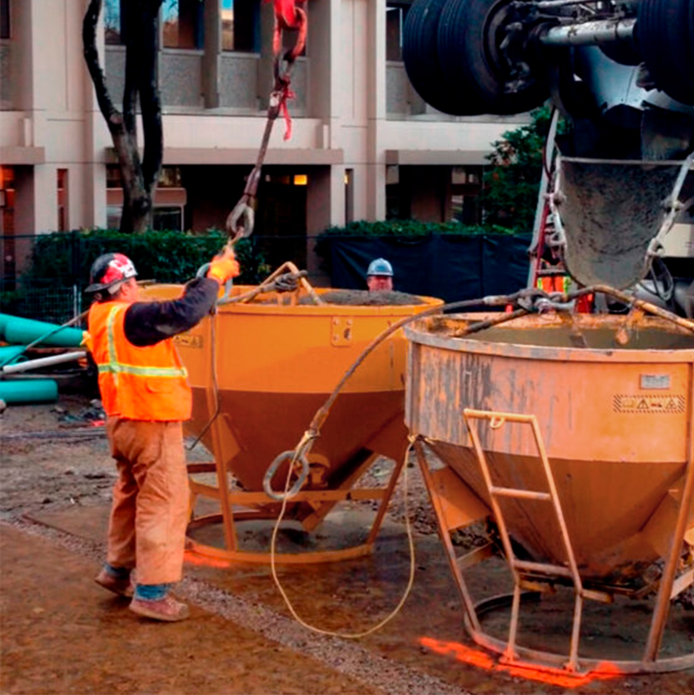 - Permite un flujo constante de hormigón desde el cubo hasta el encofrado.