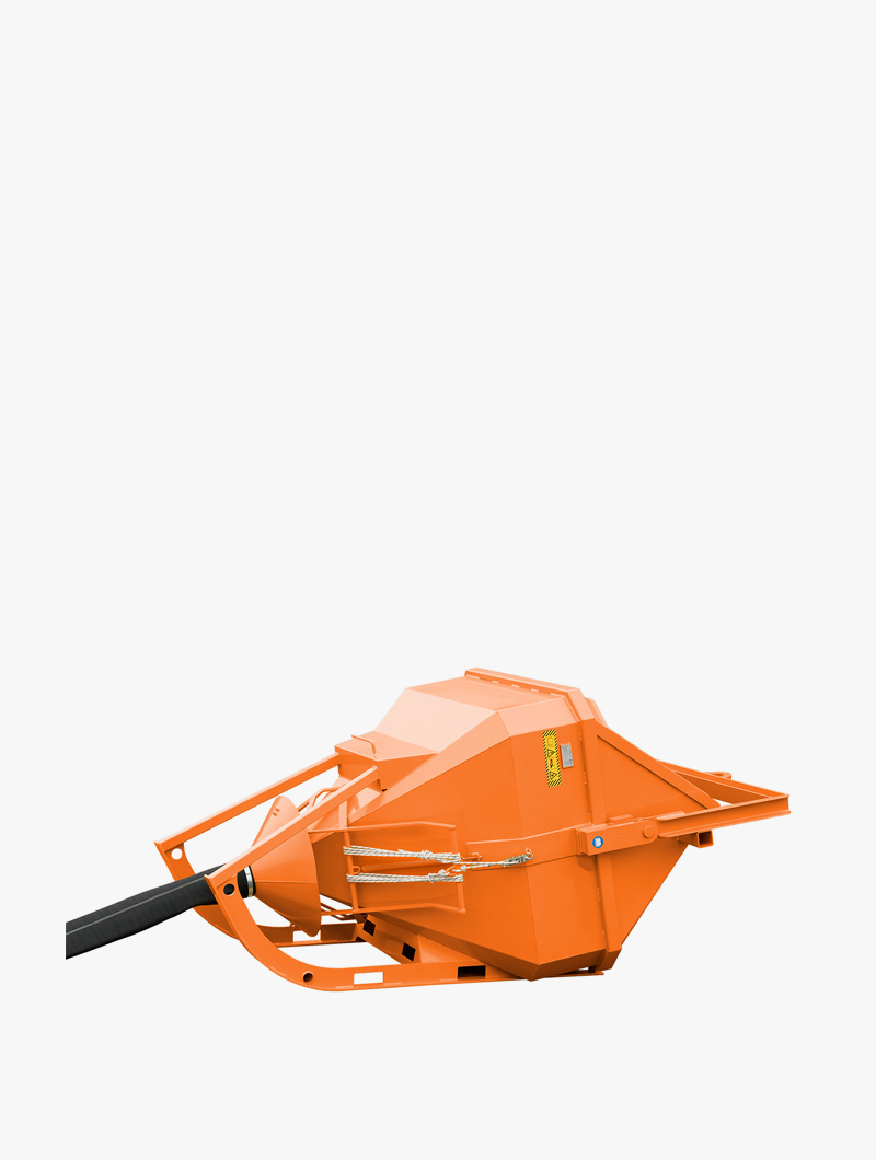 Cubo para hormigón tumbado con tubo de coma y base para horquillas