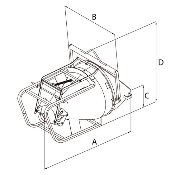 - Cubo para hormigón con tubo de goma tumbado, para una menor altura en la fase de carga en tierra.