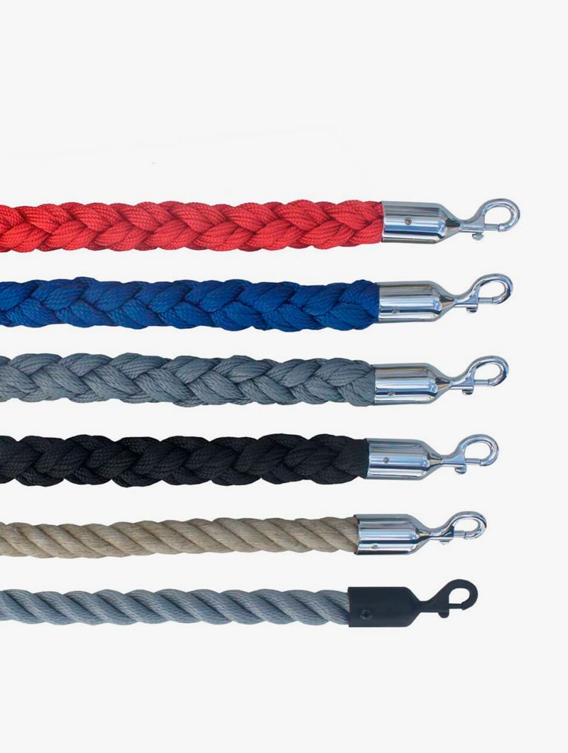 Cuerdas trenzadas y terciopelo para postes de control de masas