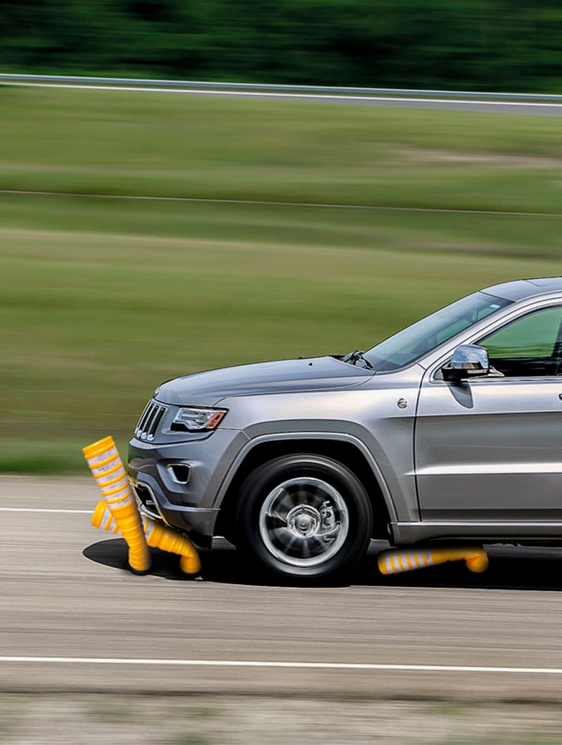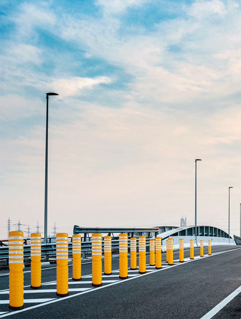 Fruto del estudio del polímero de alta memoria elástica, nacen los delimitados para carreteras especiales. Su alta memoria elástica permite que su estructura se deforme totalmente durante el impacto, retomando su posición inicial después del paso del vehículo.