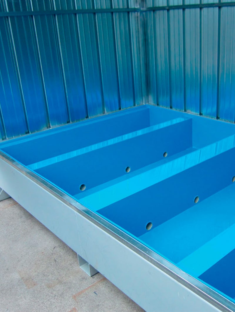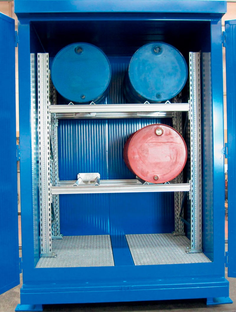 Solución óptima para almacenar en el exterior hasta  4 tambores de 200L en posición horizontal, protegidos de elevados choques térmicos.