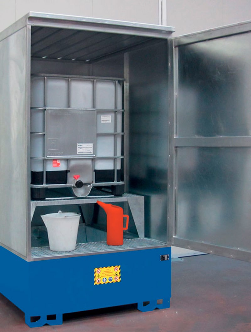Cubeto de 1000 litros con cubierta para el almacenamiento exterior de KTC.
