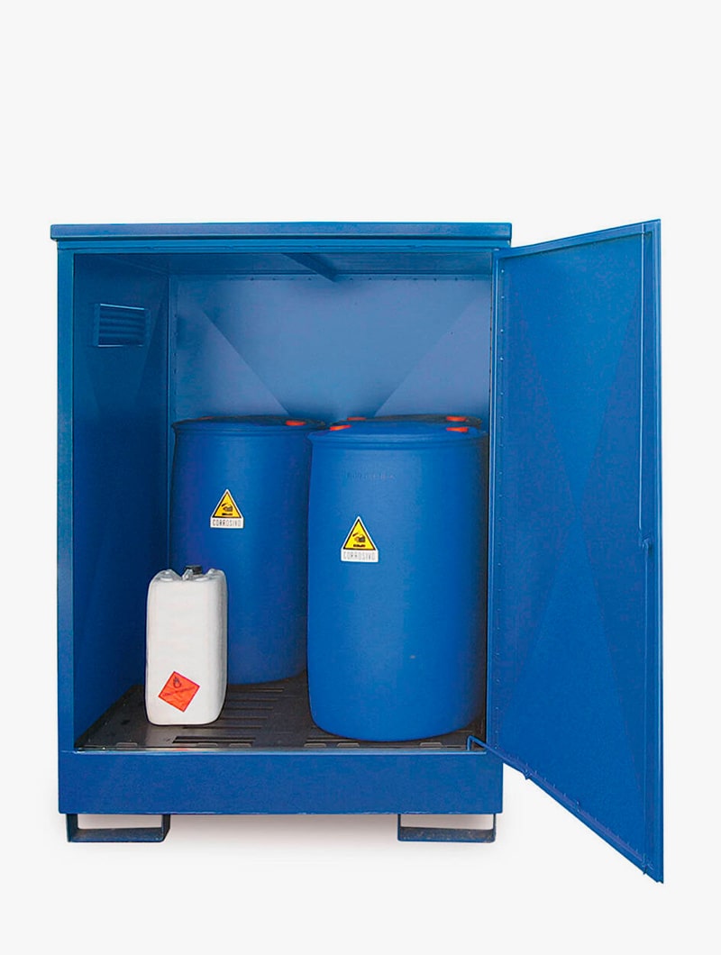 Depósito de exterior con cubeto integrado con capacidad para 2 ó 4 bidones de 200lts.