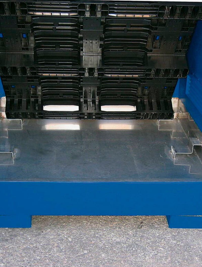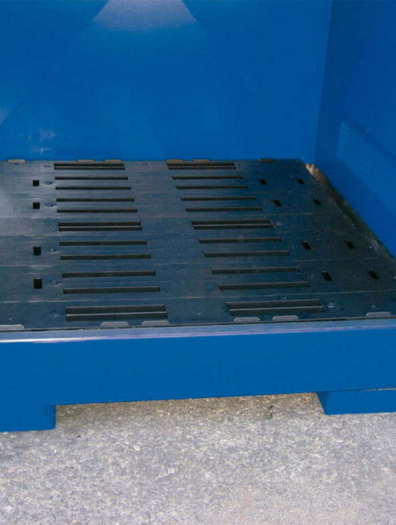 Losbidones se pueden depositar directamente sobre la rejilla interior o con palé. Gracias a sus medidas interiores también permite el almacenamiento de palets de 1200x800mm y 1200x1200mm según el modelo.
