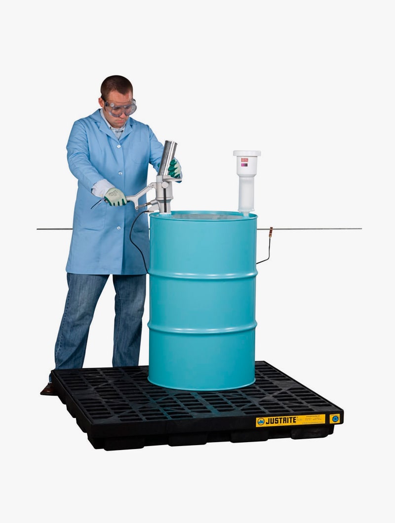 Con 140 mm de altura permite el almacenamiento y trasiego fácil, cómodo y según las normas de sustancias líquidas agresivas o contaminantes como aceites, ácidos, bases, disolventes, etc.