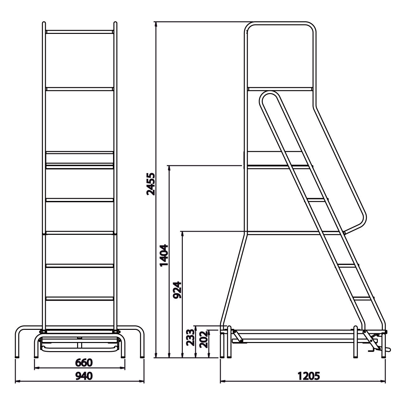 Escalera autofrenante ANNA, al presionar sobre el primer escalón, las ruedas se retraen y la estructura se apoya en el suelo bloqueando el movimiento. Las cuatro ruedas son giratorias proporcionando máxima maniobrabilidad. Estructura de tubo de acero de alta resistencia. Escalones de acero con recubrimiento de aluminio antideslizante. Dispone de parapeto de 1045mm de altura. Distancia entre escalones 240mm. Capacidad de carga de 150kg. Patas con tapones de plástico PVC antideslizantes que proporcionan una gran estabilidad.