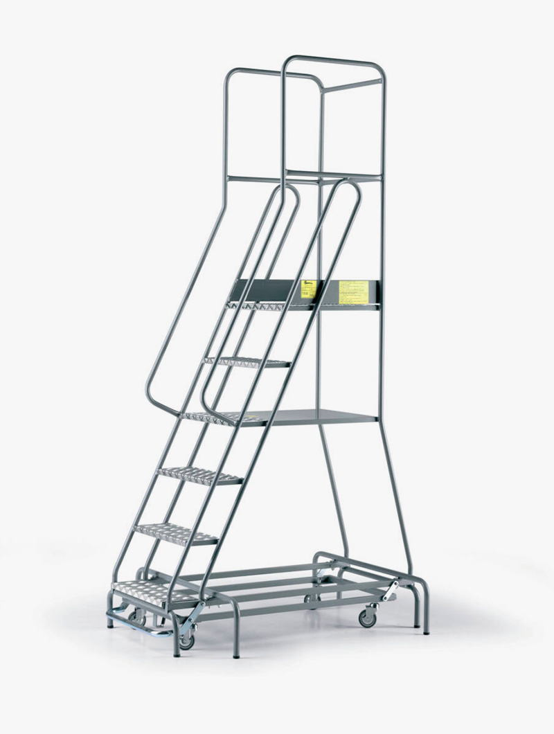 Escalera móvil ideal para trabajos de picking con sistema de frenado automático de seguridad.