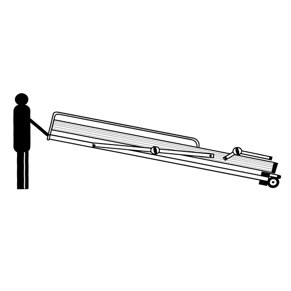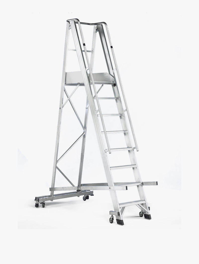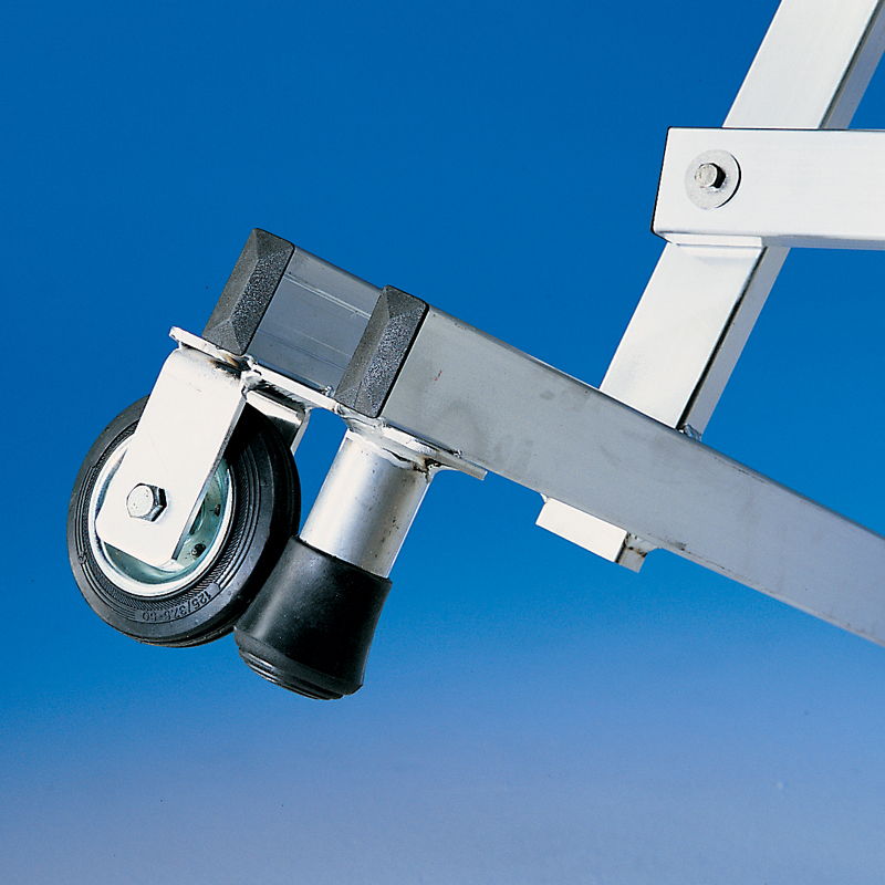 Dispone de ruedas de diámetro 125mm para su fácil traslado dentro de almacenes o locales. Simplemente cogiendo la escalera por las dos barras laterales, la ruedas facilitan el movimiento.