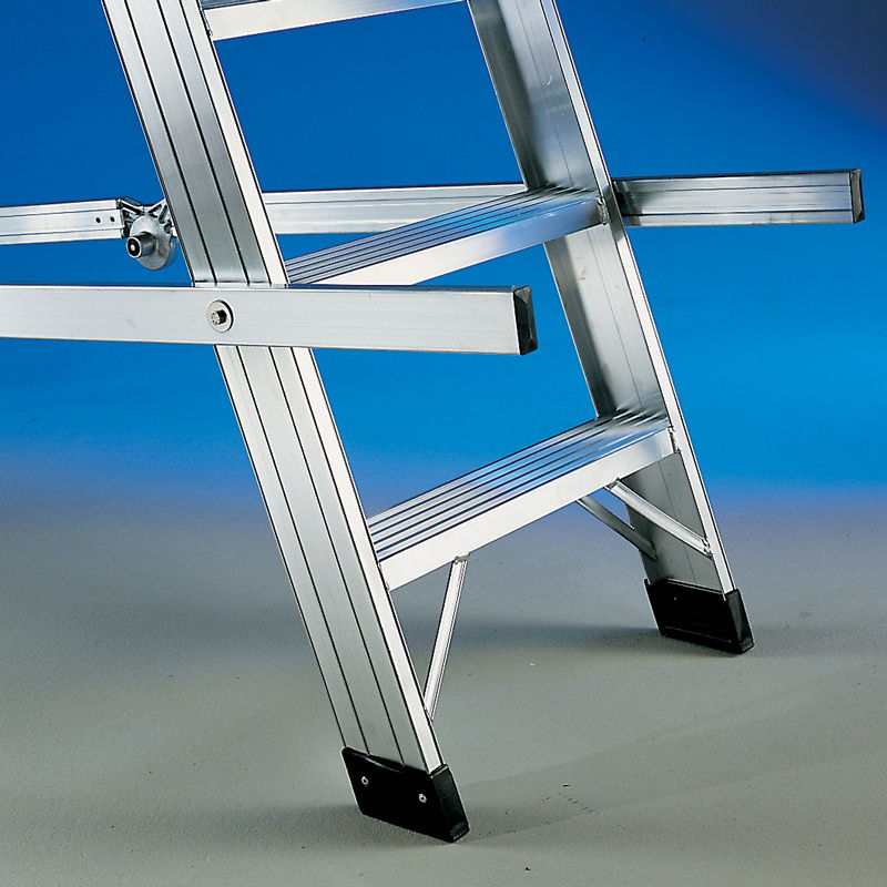 Patas con recubrimiento de goma que permiten el perfecto apoyo de la escalera en la pared o muro sin peligro alguno de deslizamiento.