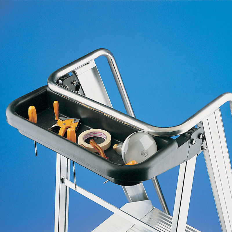 Escalera profesional ligera y resistente. Estructura formada a partir de perfiles de aluminio nervados y soldados. Pensada para trabajar en posición caballete.