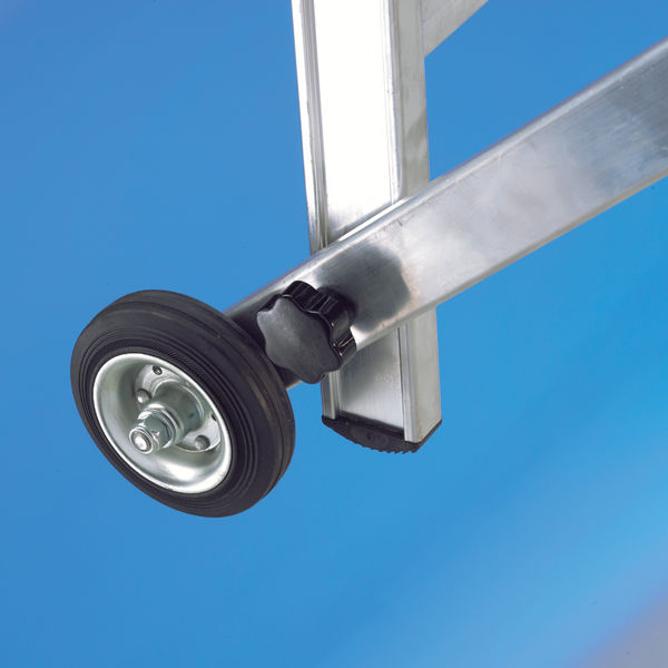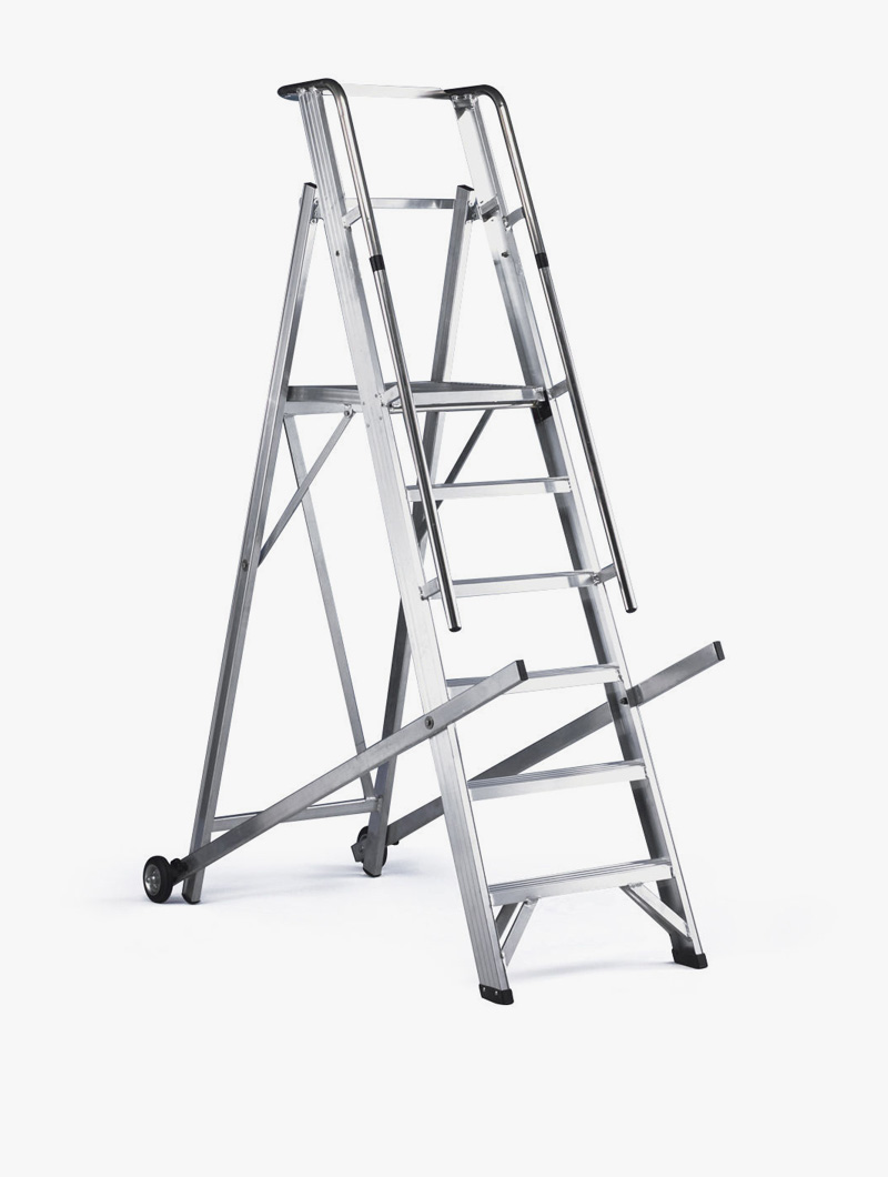 Ideal para cualquier tipo de trabajo profesional. Escalones de 80mm de ancho y paso entre escalones de 250mm. Dispone de ruedas de diámetro 125mm para su fácil traslado dentro de almacenes o locales. Simplemente cogiendo la escalera por las dos barras laterales, la ruedas facilitan el movimiento. A partir de media altura, la escalera dispone de pasamanos para incrementar la seguridad del operario.