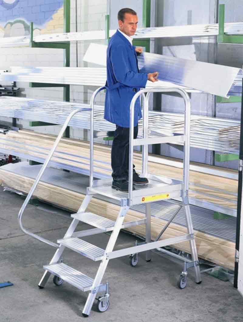 Escalera profesional con plataforma ligera y resistente apta para uso intensivo. Estructura formada a partir de perfiles de aluminio completamente soldados.